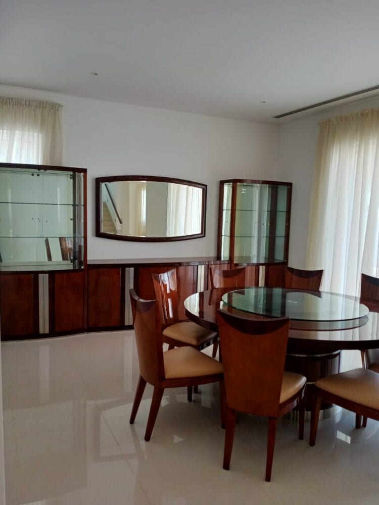 Beautiful and peaceful location in Al Mouj, semi furnished, consist of 6 good size Bedrooms, 7 Bathrooms, Maid’s room, 2 Family Hall, Balcony, modern Kitchen, Dining room, Garden, Surrounding large yard, Electric gate, Security System and a car parking. the villa has modern interiors which is designed to optimize space and light.